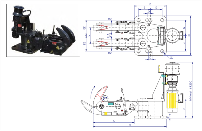 TYPE | S.W.L(KN) | RUNNING PULL(KN) | WEIGHT(kg) | A | B | BB | C | D | E | EE | F | G | H | K | R | X | TYPE | S.W.L(KN) | RUNNING PULL(KN) |